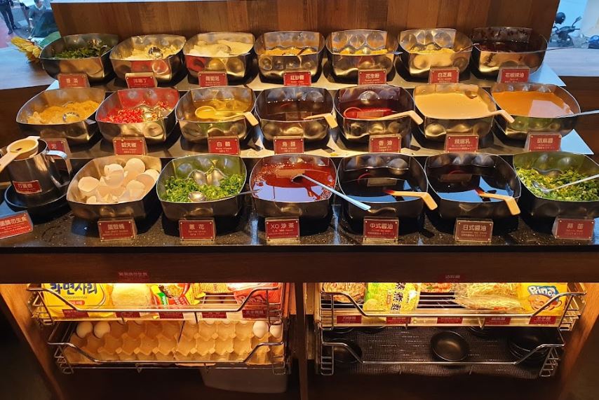 價格跟菜單同馬辣頂級麻辣鴛鴦火鍋幾乎是一樣的。 新馬辣沒有水果吧台及甜品,換成了其它食材種類。 天使紅蝦跟花雕雞湯底依然是新馬辣的人氣話題。