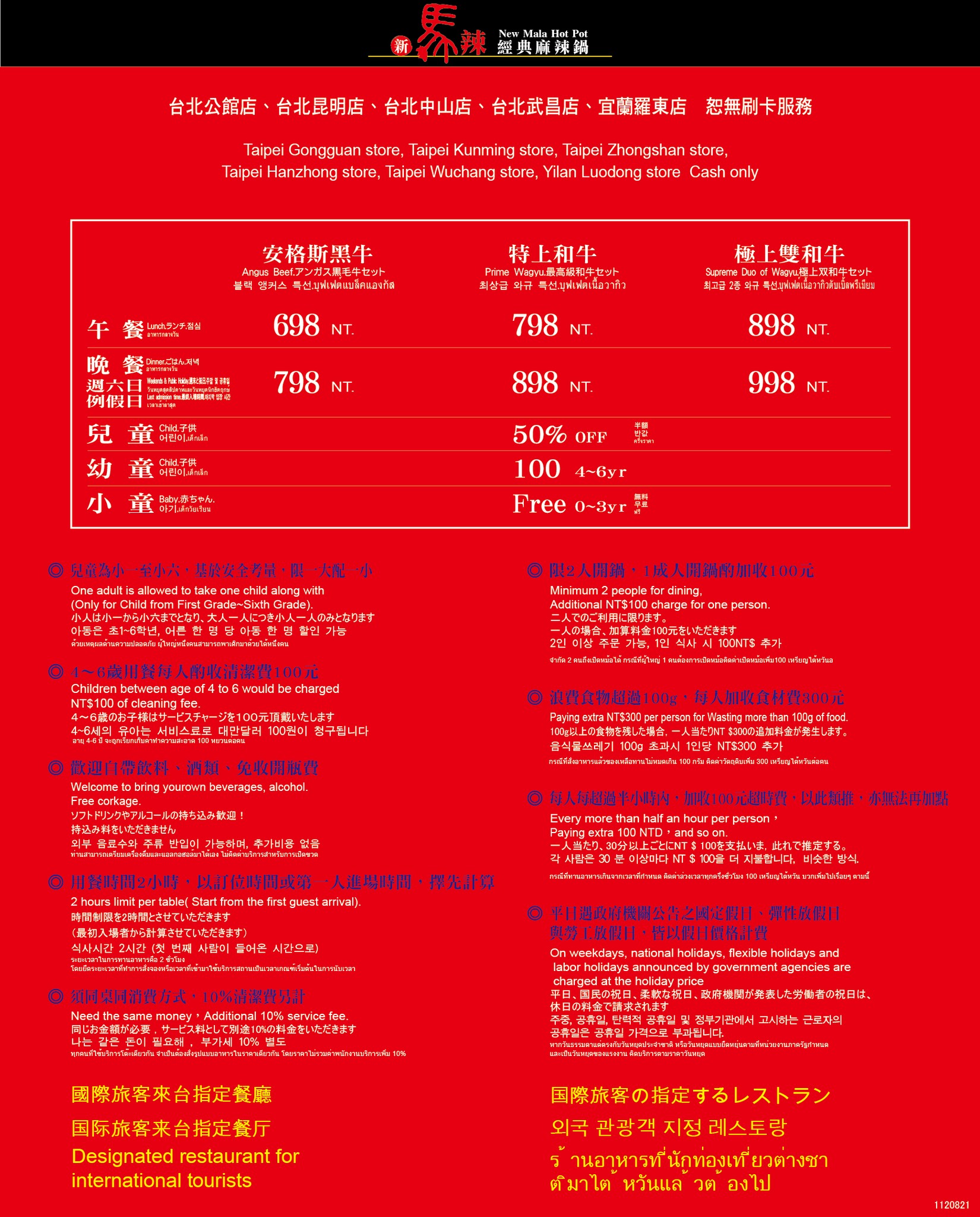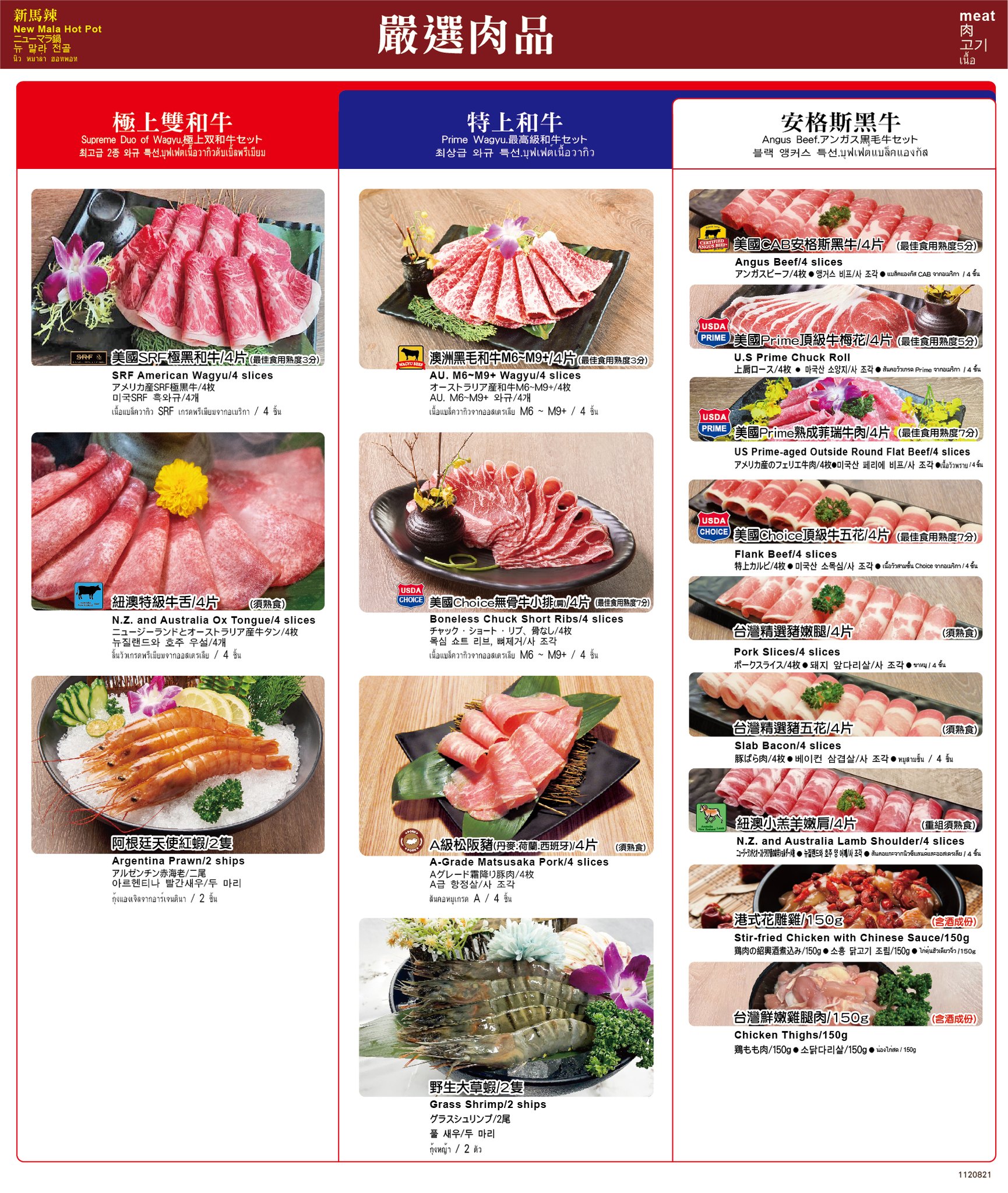 這間是新馬辣經典麻辣鍋的漢中店,提供美國極黑和牛、澳洲黑毛和牛、以及美國安格斯牛等頂級食材。 海鮮方面則主打阿根廷大紅蝦與野生大草蝦。 價格跟菜單同馬辣頂級麻辣鴛鴦火鍋幾乎是一樣的。 集聚人氣的秘密武器北海道大帆立貝當然不能少。 還有阿根廷的天使紅蝦跟花雕雞湯底也獲得極高的稱讚。