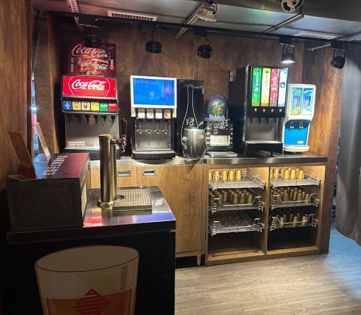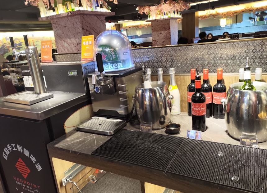 烤肉吃飯不可少的台灣生啤酒、海尼根啤酒、以及紅點啤酒,這邊都有! 另有紅白酒的調酒吧,可以自行調配出五顏六色的雞尾酒。