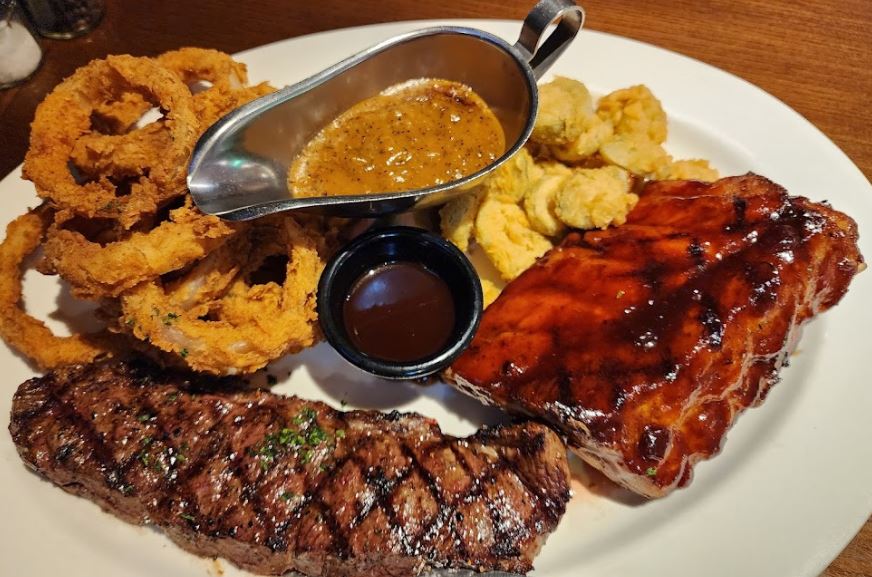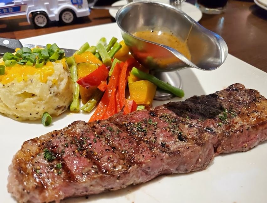 不過可能因為美式風格烹飪也不拘小節,食物看著好看,卻常被抱怨牛排烤得過老或是過生、肉質偏硬等。 相對來說,豬肋排被抱怨的比較少 (因為沒有幾分熟的問題哈哈)。