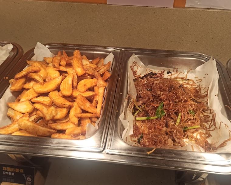 主要特色是有供應許多韓式的菜色,海鮮煎餅、炒冬粉、泡菜炒飯、春川辣炒雞等。 其它有韓國泡菜、蜜醬雞塊、炸餃子、炸薯條、和炸地瓜等。 飲料有常見的可樂機、果汁、冰沙等含糖飲料。 這裡的石鍋拌飯評價差些,乾乾硬硬的鍋巴放一些雜菜,慣吃白米飯的大概不會喜歡。